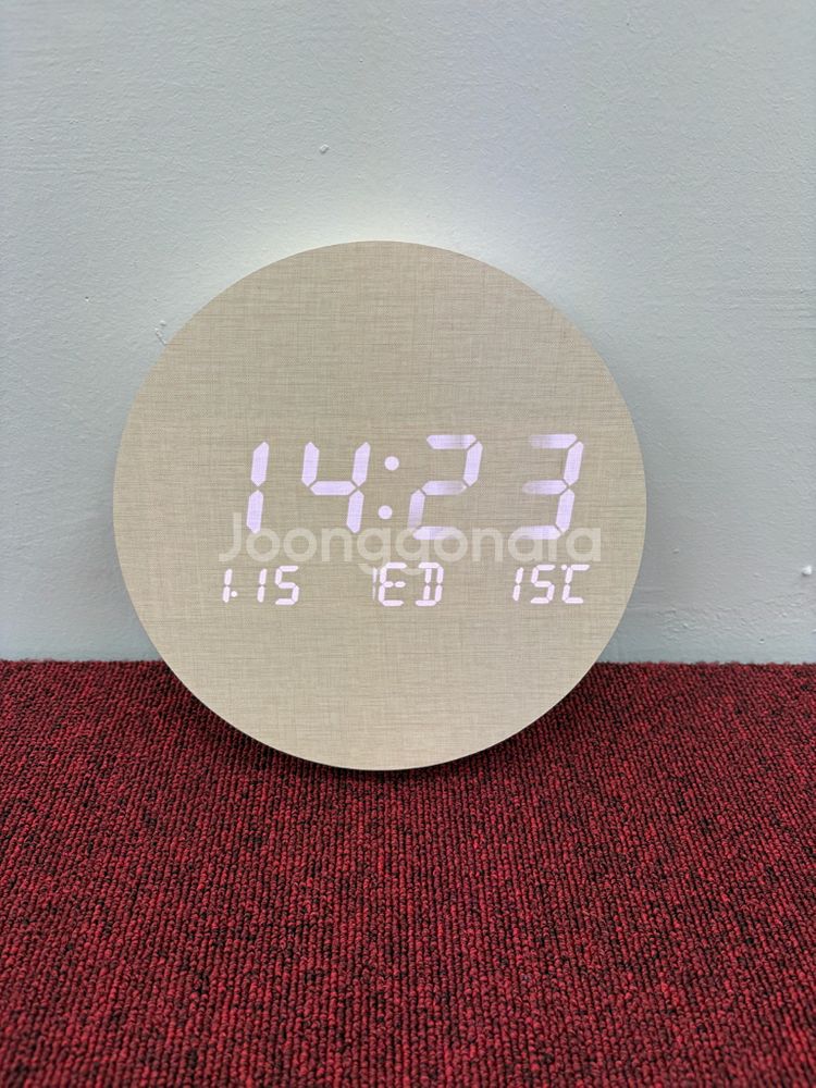 깔끔한 원형 디자인의 LED 디지털 시계예요. USB 케이블 포함되어 있고 상태 양호합니다. 인테리어 소품으로도 예쁘고 실용적이에요!