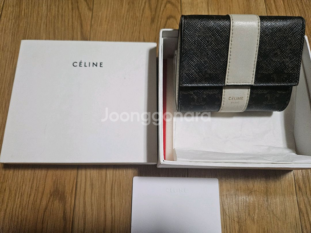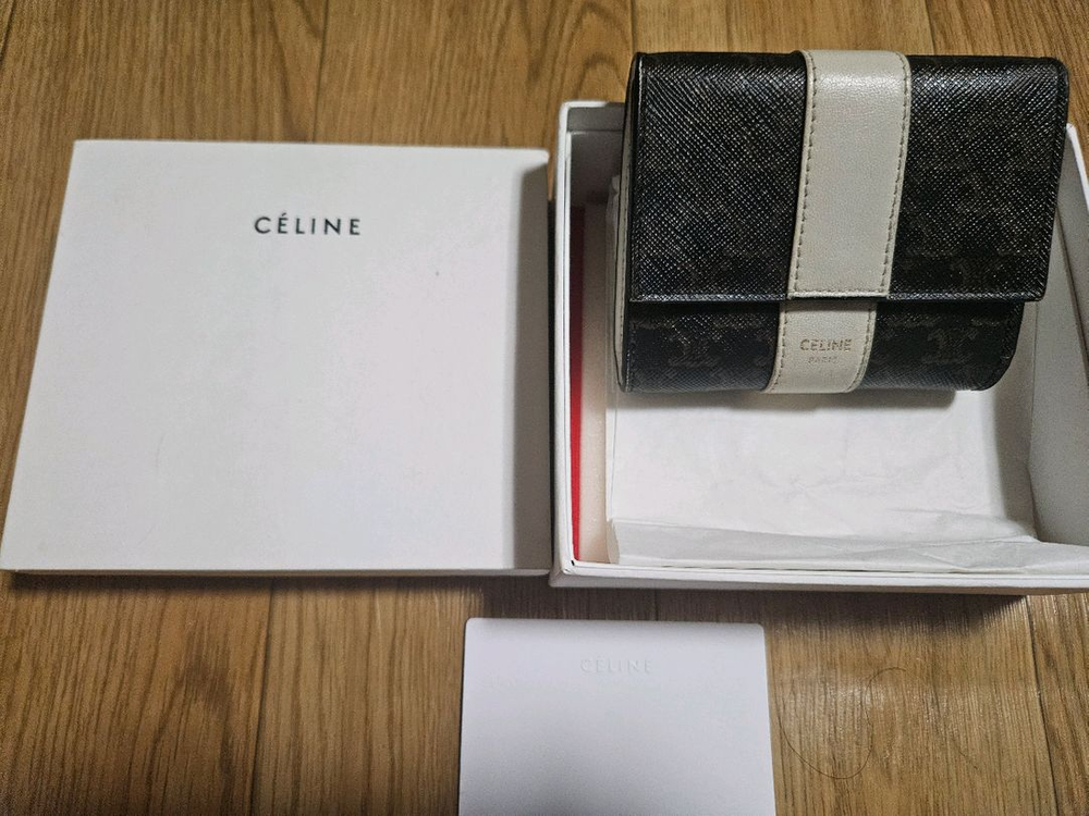 - 공식 명칭: 스몰 스트랩 지갑 - 트리옹프 캔버스 & 램스킨 (Small Strap Wallet in Triomphe Canvas and Lambskin) - 모델 번호: 10H262DB7.01TA - 상세 특징: 셀린느의 상징적인 트리옹프 패턴이 들어간 코팅 캔버스 소재에 화이트 컬러의 가죽 스트랩이 포인트인 모델입니다. 안감은 부드러운 양가죽(램스킨)으로 되어 있습니다. - 정품이며 박스 포함입니다
