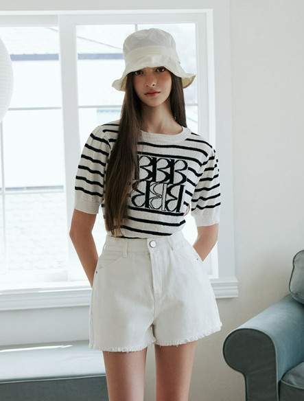 에고이스트 부클 자카드 볼륨 반팔 풀오버 55사이즈 EGOIST 얇은 테리질감의 면 혼방으로 비침 살짝 있고 여름에 적당 화이트에 블랙 스트라이프이고 소매볼륨감, 소매끝과 아랫단 시보리 잡아주는 짧은 기장이에요 뒤 상단 리본으로 묶어주어 포인트되요 니트라 자연스런 소재사용감 정도이며 대체로 양호한 컨디션 . 사이즈 가슴단면 42 기장 약 52.5 55사이즈입니다