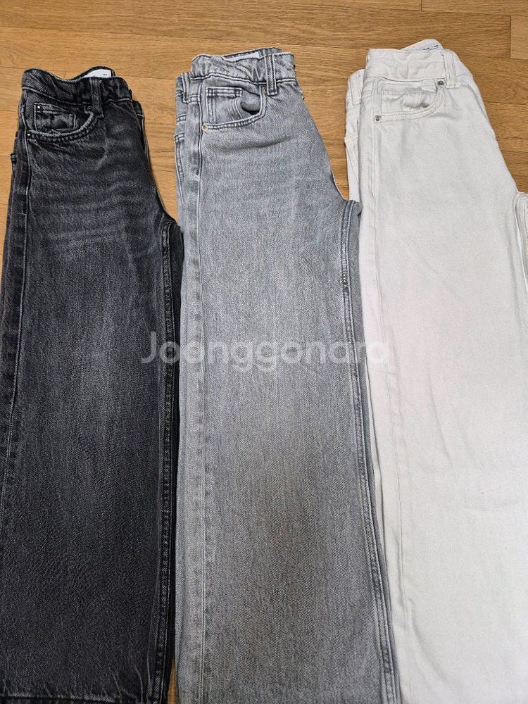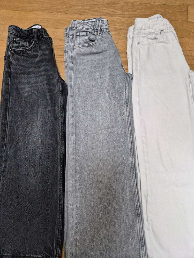 자라 키즈 와이드핏 청바지 3벌 사이즈는 10 (CM 140) 밴드가있어 허리사이즈 조절가능 약 총장79~82 동일모델 바지 같은데 총장이 조금씩 다르네요~ 한겨울 빼고 가능한 두께에요~ 개당6천원
