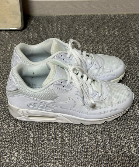 나이키 에어맥스90 화이트 남성 280 사이즈 판매합니다. 나이키 매장에서 구매한 정품 제품이며 신발 단품입니다. 사용감이 적은 중고제품이고 신발 돌려 신는 편이라 연식 대비 깔끔하게 신었습니다. 왼발 발등 부분에 오염이 있고 미드솔에 약간의 황변현상이 있긴하지만 크게 신경쓰일 정도는 아닌 것 같습니다. 상태는 사진 꼼꼼하게 올렸으니 구매의사 있으신 분만 연락 바랍니다. 빠르게 택배 접수 해드립니다.
