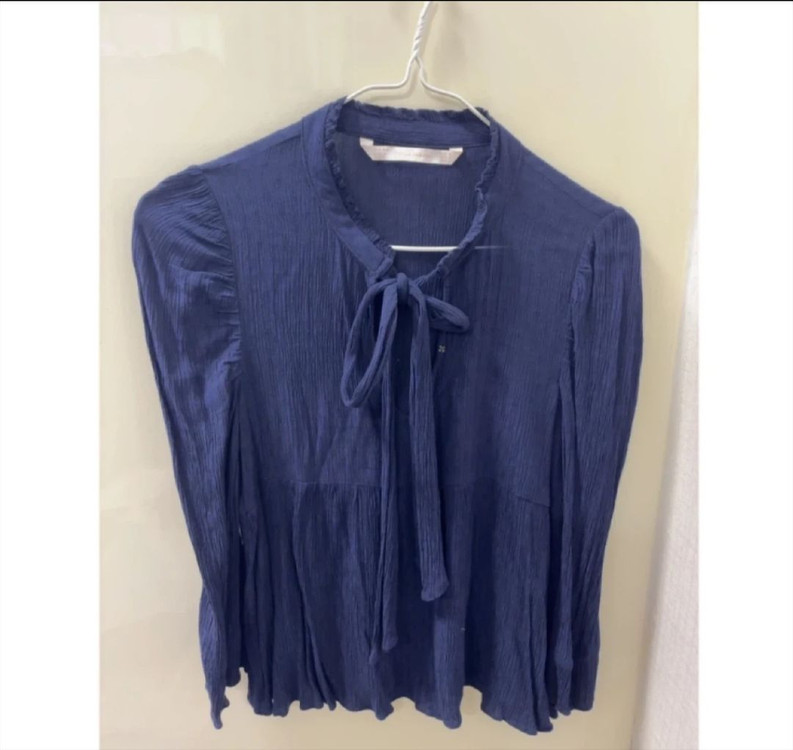 자라 네이비 블라우스 입니다 5만원대 구입했어요! 리본끈이 있어서 어성스러워요
