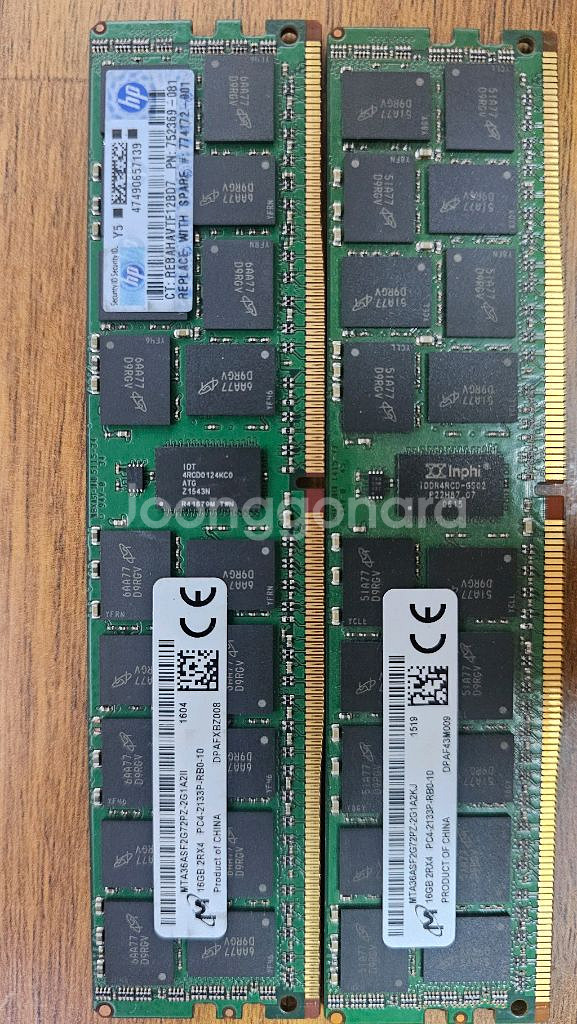 마이크론(2133p 2Rx4) 16기가 2장. 장당 9.5만원 직거래는 서울 은평구 6호선 증산역에서 가능합니다.. 데스크탑용 아닙니다. 워크스테이션 및 서버용 램입니다.