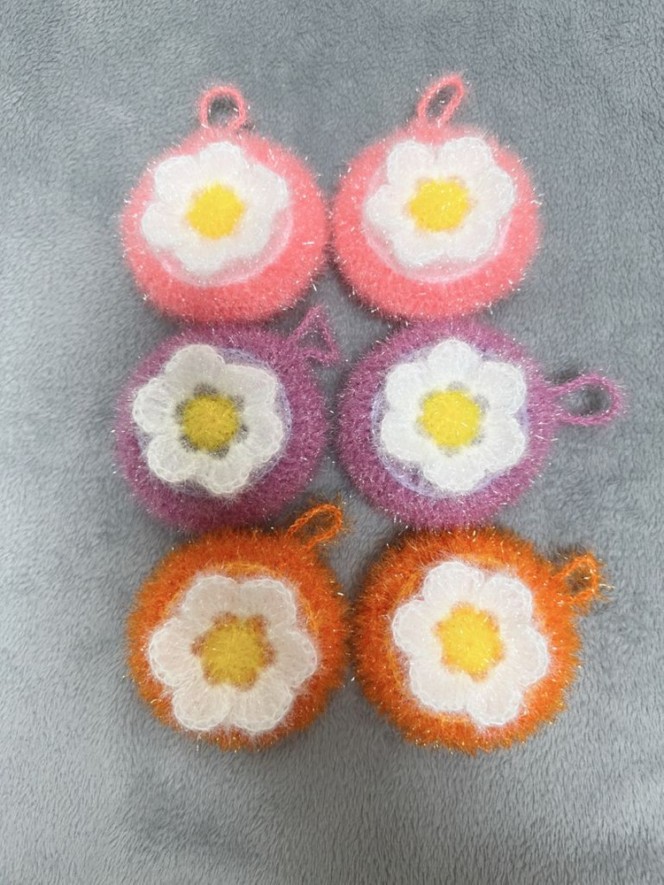 포근포근한 꽃단지 모양 수세미예요 💗 핑크, 보라, 오렌지 색감이 화사해서 주방 분위기까지 밝게 만들어줘요 ✨ 동글동글한 호빵 느낌에 입체 꽃 포인트가 정말 귀여워요 🌼