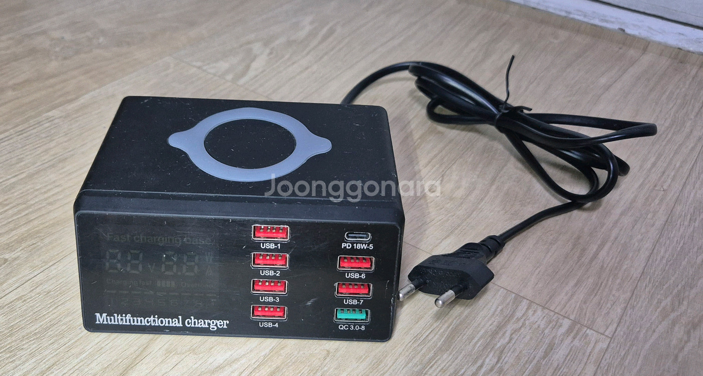 다기능 멀티 충전기(무선충전도 가능) 다기능 충전기입니다. 8포트+무선충전 모델명 : X9 최대 출력 : 100W USB 일반 포트 6개 USB 일반 포트 고속충전 포트 1개 USB C타입 고속충전 포트 1개 무선충전 1개 충전스펙은 제품뒷면 사진을 참고해주세요. 판매구성품 : 충전기본체+8자전원코드 편하게 직거래는 2,8,수인분당선 등에서 가능합니다 [평일 19:00이후, 주말 시간조율] 택배시, CU알뜰택배비는 제가 부담합니다.시간도 돈이라서요...