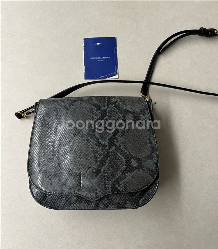 레베카밍코프 뱀피 패턴 숄더 & 크로스백 입니다 -코팅된 느낌의 가죽 소재로 고급스럽고 오염에 강해서 관리하기 편해요 -뒷면에 외부주머니가 있어서 간단하게 카드넣거나 하면 편했어요 -원래끈은 넓이가 넓은 디자인이라 저는 캐빈클라인 사피아노끈으로 바꿔서 사용했어요 (끈 금속색감과 로고부분 사진찍어뒀습니다) 어깨끈은 가지고계신 다른 디자인으로 바꾸면 또다른 느낌으로 메실수 있을거예요 -외출시 필요한건 생각보다 넉넉하게 들어가는편입니다 -색상이 차분한 계열인데 패턴이 있어서 단색으로 코디했을때도 심심하지 않게 어울려요 -사이즈는 약 22*20*6cm 입니다