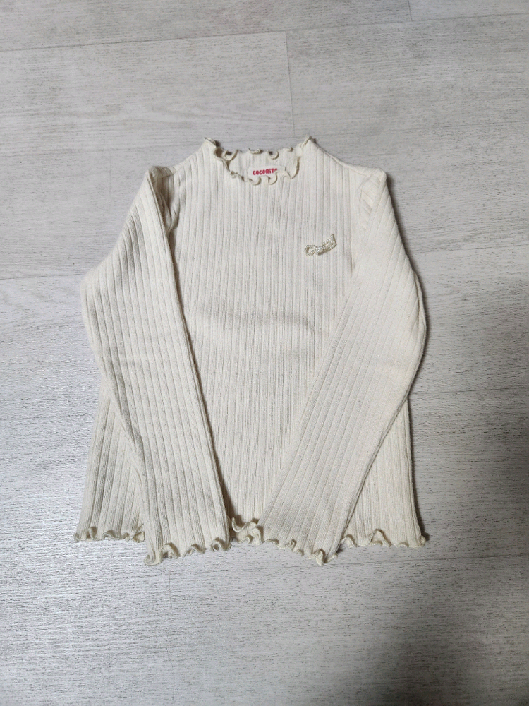 COCORITA 코코리타 브랜드의 아이보리색 긴팔 티셔츠입니다 - 사이즈는 120입니다 - 물결 모양 디테일이 귀여움을 더합니다 - 부드러운 면 소재로 아이가 편안하게 입을 수 있습니다 - 봄, 가을에 단독으로 입거나 겨울에 레이어드해서 입기 좋습니다