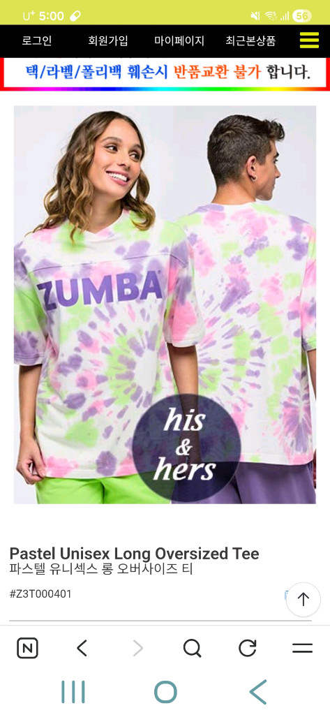 줌바 신상 타이다이 줌바닷컴, 마미케이 모두 품절 xs사이즈 82.000 (택비별도 4.000) 오버핏이라 s.m입으시는분들도 괜찮으실듯 합니다 텍달린 새상품 마미케이구매 여러명같이 구입했는데 수량미스로 1개남았네요 ㅡ반값택배 사절 ㅡ네고문의 사절 발송은 사정상 월요일 가능