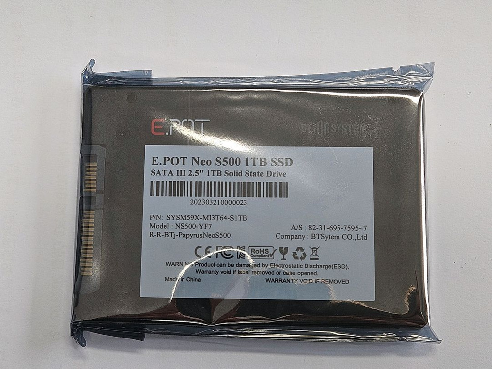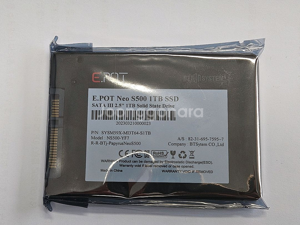 1. 상품명: E.POT Neo S500 SSD 2. 제품상태 : 신품(사용 안함) 3. 특이사항 : A/S불가 (초기 불량은 교체 및 금액환불 가능) 4. 사양: 첨부 이미지 참고하세요. 제품 양산설비에 적용하였던 제품이고 B급 NAND를 사용한 제품이 아니고 정품 NAND를 사용한 제품입니다. 장비 A/S용으로 보유하고 있던 재고를 유지를 필요가 없어져서 판매합니다. A/S는 불가하지만 초기에 발생한 불량에 대해서는 교체 및 판매가 환불해 드립니다. 가급적이면 직거래를 선호합니다. (비책임 택배 거래는 가능) 수원 망포역 인근 디지털엠파이어2에 워치하고 있습니다. 1TB 10개 각 95,000원 직거래 선호하지만, 택배비는 제가 부담합니다. 세금 계산서 발행 가능합니다.(VAT 별도)