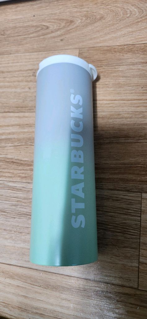 스타벅스 에치드텀블러 새 상품입니다 그라데이션 민트색으로 시원하고 예뻐요 뚜껑 포함되어 있으며, 스테인리스 재질로 보온/보냉 기능이 뛰어납니다 용량은 473ml로 넉넉하게 사용하기 좋습니다 선물받고 보관중입니다