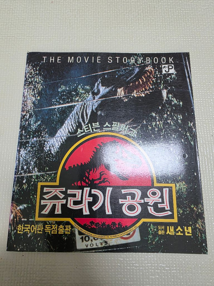 1993년 7월 새소년에서 출간한 쥬라기공원 더 무비 스토리북입니다. 사이드 변색 있습니다. (사진 참고)