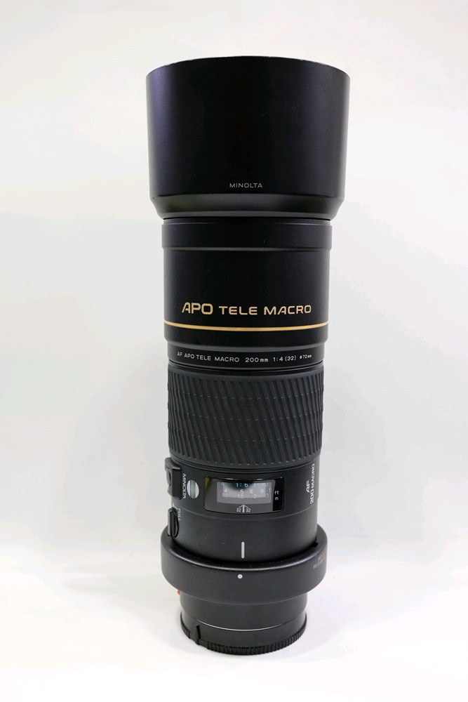 미놀타 200mm F4 MACRO 미놀타 전설렌즈로 유명한 미놀타200마크로 렌즈 입니다. 작동문제 없이 잘 작동되며 제습함 보관한 렌즈라 렌즈알에 곰팡이나 먼지 없으며 렌즈외관 사용감도 없는 상태입니다. 오리지날 후드와 앞캡 전부 포함되어 있습니다. 아는 사람은 알고있는 렌즈라서 별다른 설명은 안드리겠습니다.
