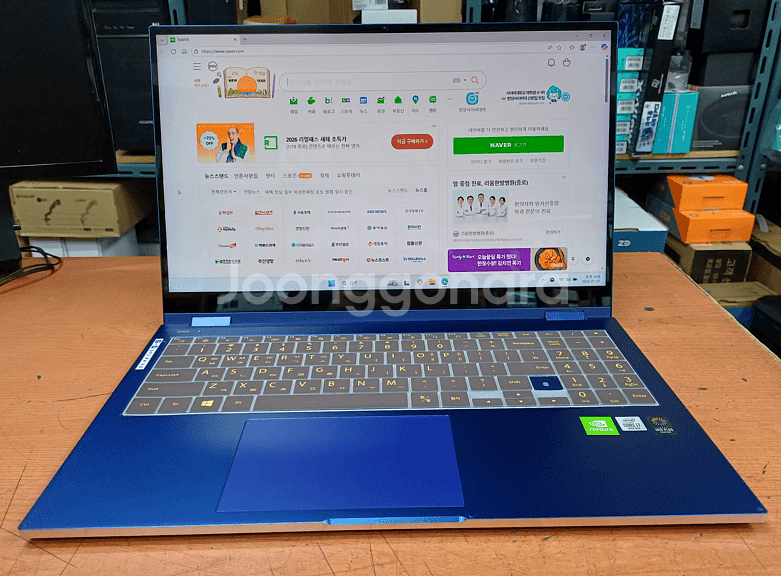 # 삼성전자 갤럭시북 플렉스 NT950QCG-X716A 운영체계 : Windows 11 Home 프로세서 : Intel® Core™ i7-1065G7 Processor(1.30 GHz up to 3.90 GHz 8 MB L3 Cache) 메모리 : 16 GB LPDDR4x Memory (On BD 16 GB) 저장장치 : 512 GB NVMe SSD 디스플레이 : 39.6 cm (15.6 inch) FHD 광시야각 QLED Display (1920 x 1080), 터치스크린 그래픽 : NVIDIA® GeForce® MX250 Graphics with GDDR5 2 GB Graphic Memory *멀티미디어 AKG 스테레오 스피커 ( Max 5 W x 2 ) Smart Amp SoundAlive™ 내장 듀얼 디지털마이크 720p HD 카메라 *네트워크 : Bluetooth v5.0 / Wi-Fi 6 (Gig+), 802.11 ax 2x2 *포트 : 2 Thunderbolt™ 3 / 1 USB-C® / UFS & MicroSD Combo 1 헤드폰 출력/마이크 입력 콤보 *입력장치 페블 키보드 / 숫자키(백라이트 지원) 터치스크린 / S 펜 / 클릭패드 보안기능 : TPM, 지문인식 색상 : 로얄 블루 전원 : 65 W USB-C® 어댑터 무게 : 약 1.57 kg * 상태는 매우 깨끗합니다