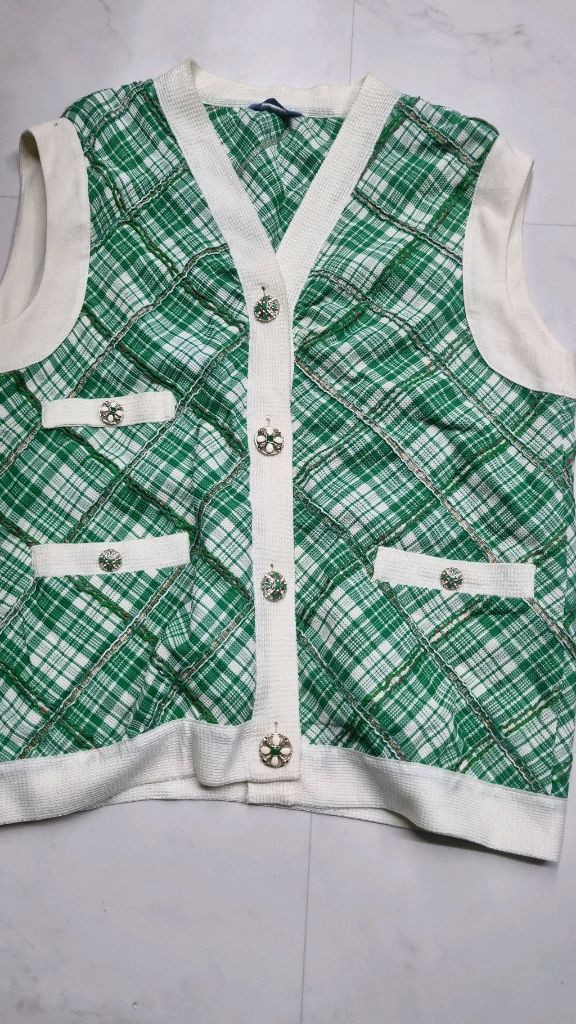타임 간절기트위드조끼 82 깨끗해요 가로53길이60 입으면화사하고 예뻐요 하실분만연락주세요