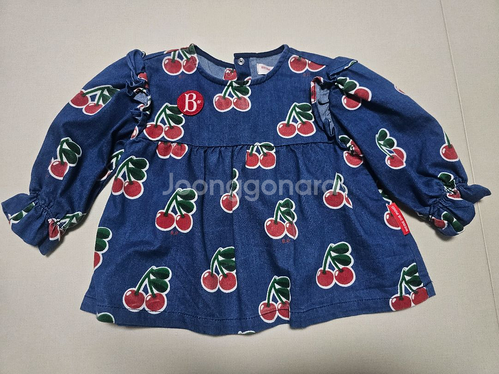 베베드피노 데님 블라우스입니다. 선물받고 두번밖에 못입힌 새옷인데 데님특성상 세탁했더니 상세사진처럼 체리몇개에 색빠짐이 있습니다. 감안하여 저렴하게올리니 예민맘은 패스해주세요. 개인간의 거래이니 환불은 불가고 택배비는 별도입니다.
