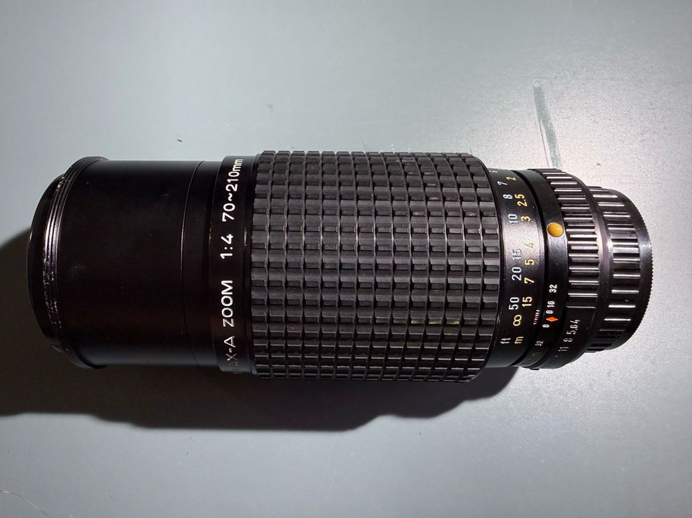 펜탁스 a 70-210 f4 판매합니다. 결괴물에 영향은 없으나 전옥에 클리닝마크가 좀 있습니다. 경통 흘러내림은 있긴 한데 심하진 않습니다. 사진에서처럼 가만 두면 흘러내리진 않는데 움직이면 약간씩 흘러내립니다