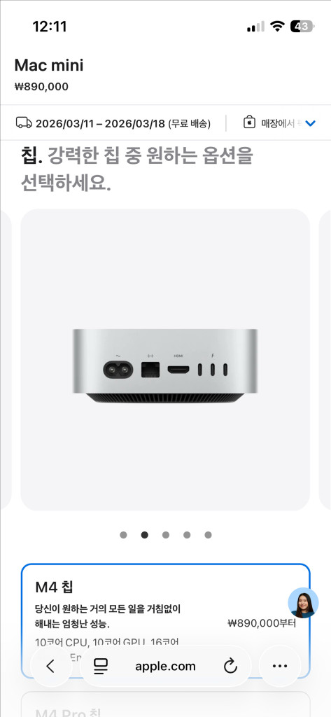 m4 맥미니 깡통 미개봉 판매합니다 배송예정일 3/11 배송지 변경 가능합니다