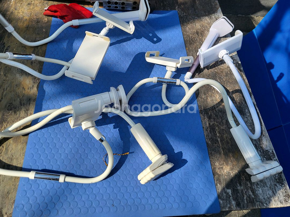 자바라 스마트폰 거치대입니다 침대나 책상에 고정해서 사용하기 편리합니다 자유롭게 구부러져서 각도 조절이 용이합니다 사용감 있습니다 직거래 부산 재송1동 또는 택배3500원