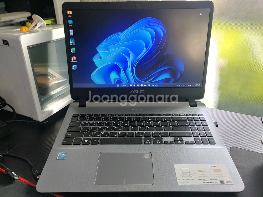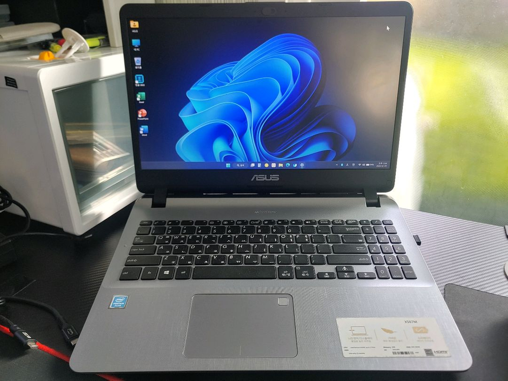 ASUS Vivobook X507M 15.6인치 노트북 CPU - Intel Pentium N5000 램 - 4GB 저장장치 - ssd 128GB 그래픽 - Intel(R) UHD Graphics 605 구성품 - 본체, 충전어댑터 ※ 택배비 포함 ※ 윈도우11홈, 한글2022, MS오피스2021 정품 설치 강의용, 사무용으로 매우 쓸만합니다 외관은 생활 흔적이 좀 있지만 화면, 키보드 등 내부는 깔끔하고 배터리 쓸만합니다