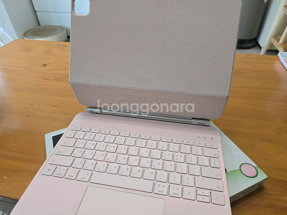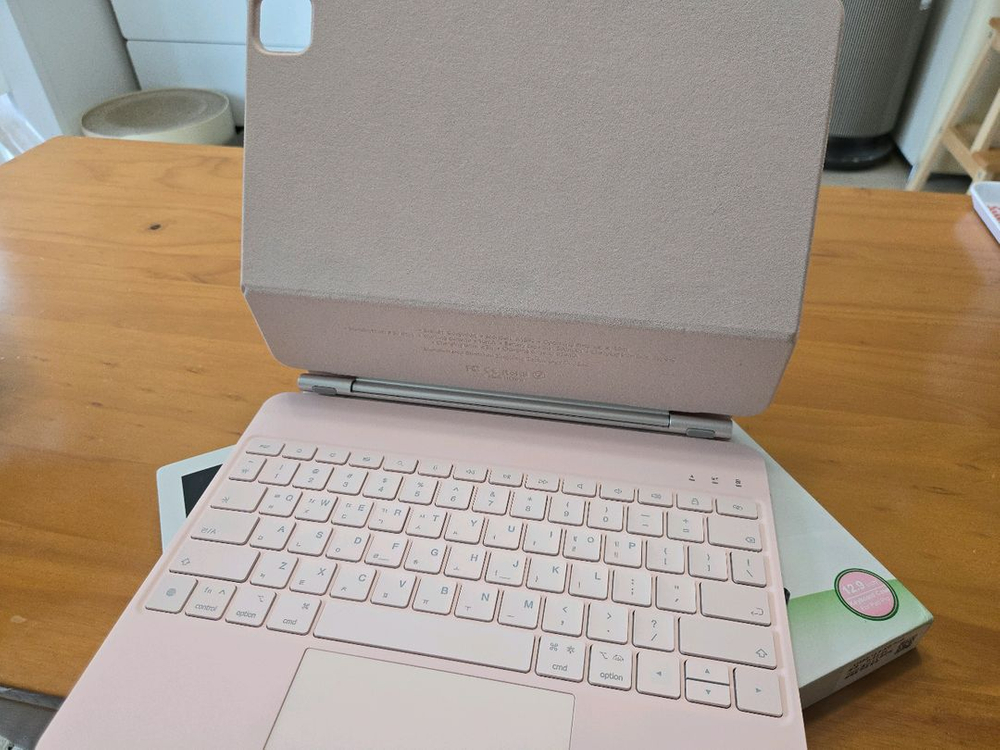 구조독 매직키보드 아이패드 에어13용 핑크 풀박 (A1890) + 25년 11월 구입 + 한글각인 + 키스킨 있음 + 에어13용 + 외부사용 없음. 사용감 없음 + 자세한 내용은 링크참조(구입한 옵션은 에어6 13) https://ko.aliexpress.com/item/1005005223038003.html?spm=a2g0o.order_list.order_list_main.95.f562140flYqQ0m&gatewayAdapt=glo2kor GS편의점 반값택배 택포 4만 직거래 안산 중양역