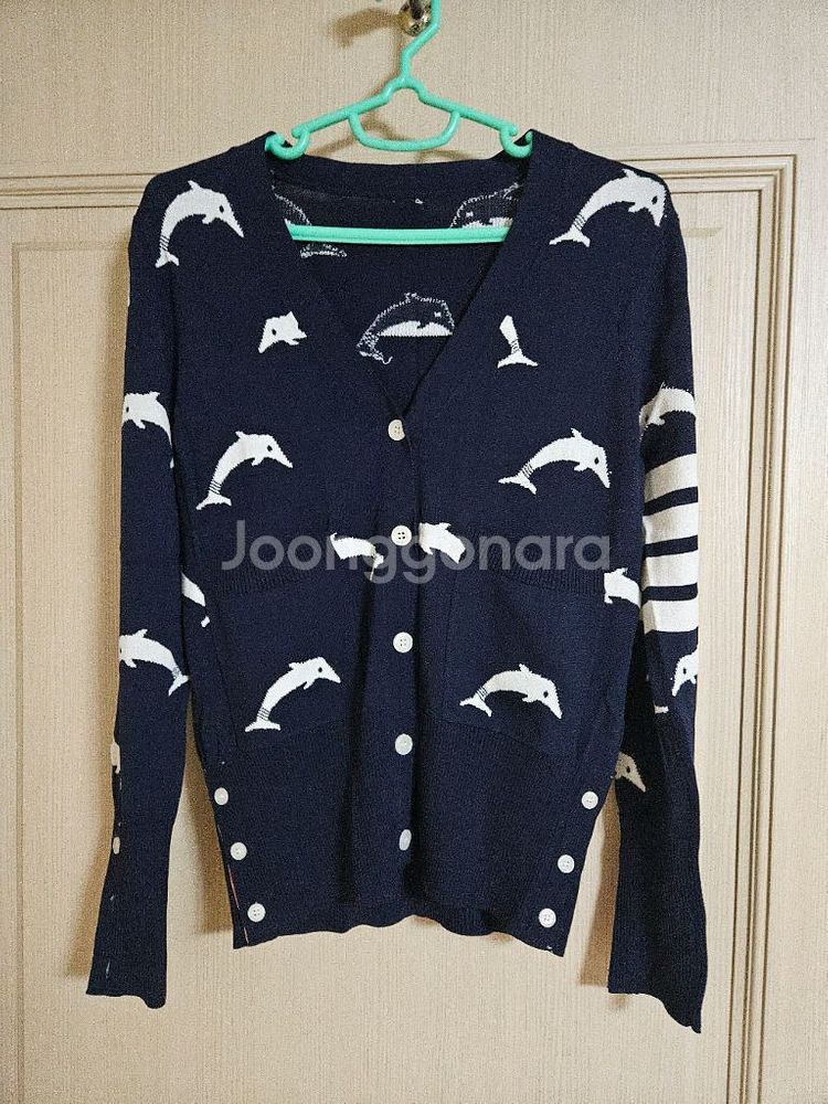 수입 가디건으로 하얀 돌고래 문양이 시원해보여요 몸에 맞게 신축성있어서 몸매가 날씬해보입니다 무엇보다 소재가 넘 좋아요 덥지 않은 소재라서 초여름 초가을에 입기에도 좋을것 같네요 특히 소매부분 허리부분 단추따라 보이는 삼색디테일이 고급스러워 보입니다 수입제품이라 비싸게 주고 구매했는데 보관만 하고 안입어서 저보다 잘입으실 분에게 판매합니다 사이즈는 L인데 수입 제품 특성상 크게 나오진 않았고 신축성도 좋아서 55~66사이즈 입기 좋으실 것 같네요 개인간의 거래로 반품 환불 어렵습니다 택포 55000원에 판매합니다