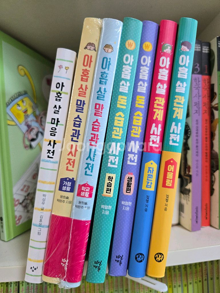 아홉살사전 7권(관계사전,말습관사전,돈습관사전,마음사전) 한권정도 일부 읽어준거 외에 진열만한 새책수준입니다 말습관사전 두권은 비닐도 뜯지 않은 새거에요 일괄 28000원 택배 착불 또는 선불시 +5천원 반품 환불 불가