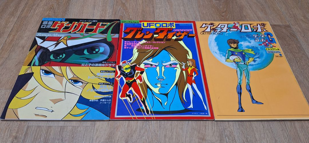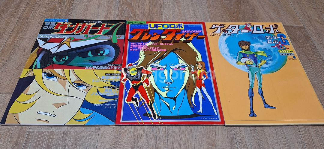 일본애니 화보집원서들 판매합니다. 상태들 양호하며 택배 4,500원 추가입니다. 1. 그렌다이저 - 9만원 2. 겟타로보 - 8만원 3. 콤바트라V - 4만원 4. 볼테스 파이브 - 3만원 5. 우주전함 야마토 - 15,000원 6. 당가드 A - 4만원 7. 타이거 마스크 - 3만원 8. 데빌맨 - 3만원 9. 레인보우 전대 로빈 - 15,000원 10. 반더북 - 1만원 11. 페이트 - 2만원