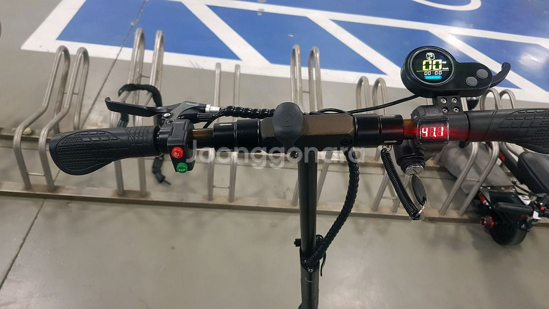 전동킥보드 판매합니다. LCD 디스플레이와 LED 라이트가 장착되어 있고 전체적으로 깔끔한 상태예요. 실내에서 보관해서 관리 잘 된 제품입니다.