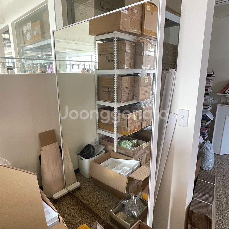 워너비가구에서 나온 이동식 대형 단면 전신거울입니다 프레임 색상은 화이트이고, 사이즈는 1200x1880입니다 집에서 뿐만 아니라 사무실, 스튜디오 등 다양한 공간에서 활용하기 좋습니다