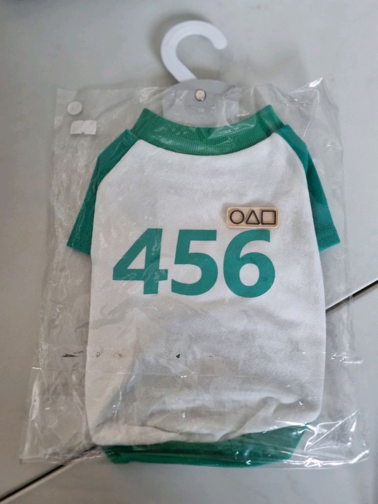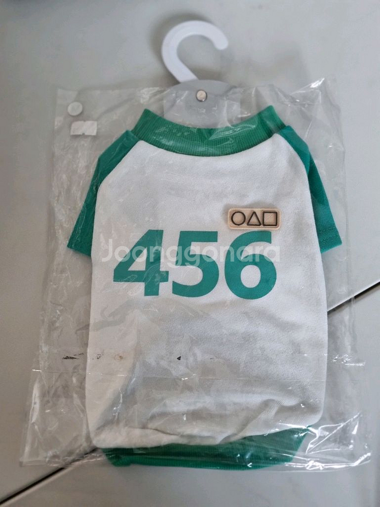 개인정보(거래정보)를 주고받는 행위는 사기에 노출될 수 있으므로 즉시 중고나라로 신고해 주세요강아지용 유니폼이에요. 그린과 화이트 배색으로 되어있고 456 숫자가 프린팅되어 있어요. 새 제품 상태로 포장도 그대로 되어 있습니다.