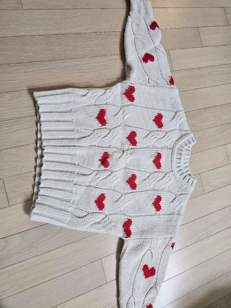리미떼두두 하트니트입니다 텍에는 L적셔있고 저희아이 7 -9살 때 입혔습니다.