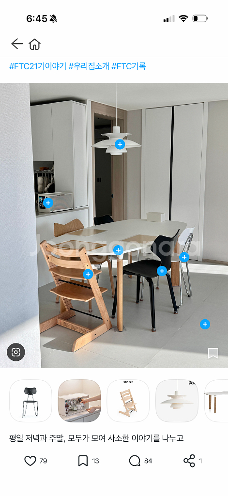 정품 프리츠한센 아날로그 테이블 판매합니다. 모던한 디자인이라 어느 인테리어에도 잘 어울립니다 프리츠한센에서는 스테인 다리 제품이 유명하지만 짭도 너무 많고 흔해서 고민끝에 골랐던 아날로그 모델 입니다. 오늘의집 스타일링 참고하시라고 올려요. (문제가되면 지우겠습니다) 상판 특히 한쪽에 사진과 같은 사용감은 있지만, 전체적으로 깨끗합니다. 전용 메니큐어로 칠하시는 분들도 계시던데 실제로 버보면 그렇게 거슬리지않아서 저는 안해봤습니다. 저는 300이상 줬었는데 정확한 가격이 기억이 안나 가격책정을 위해 최근 판매가 좀 알아보느라 네이버에 찾아보니 짝퉁을 150에 판매중이네요(환장);;ㅋㅋ 사용감 있으나 파손, 기능상 문제 전혀 없고 흔들림 없이 튼튼합니다. 실제로 보시고 구매하셔도 되나, 물건은 남양주시 다산동에 있습니다. 배송이 문제라면 운송은 협의 후 운송비 정도 에눌 해드리겠습니다. 그이상 무리한 네고는 no..