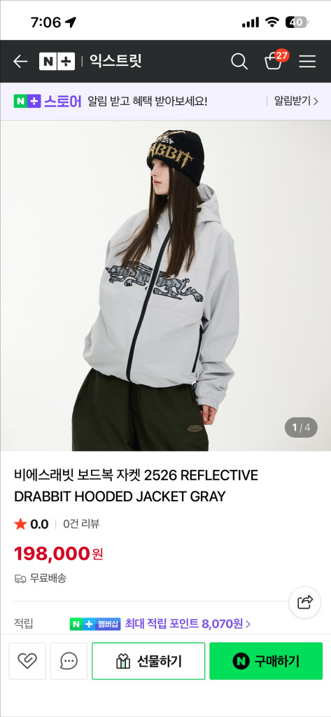 L사이즈 1월 초 구입 현제 품절된 사이즈 입니다 깨끗합니당 택배거래 또는 비발디파크 직거래 가능합니다