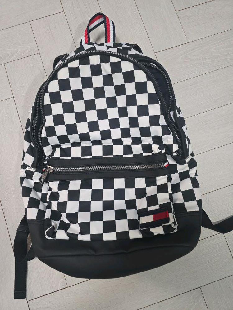 안녕하세요 유니섹스 남성 여성 남자 여자 백팩 이쁜 타미 힐피거 체크무늬 백팩입니다 사이즈 33 50 15.5 다른곳은 괜찮은데 4-5번째 사진처럼 가방 끈 부분에 생활 흔적 있습니다 GS 반값택배 +2천 일반택배 +3.5천 가능해요