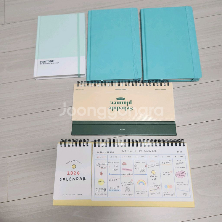 민트색 가죽 다이어리 /새제품 14×22 센치 1개당 5000원 날짜 표시없어서 내년에 써도 됩니다 다양한 속지로 유용해요 투톤 줄 노트 /비닐포장 새제품 13×19센치 5000원 줄노트로만 된 속지입니다 위클리 플래너 스케줄러 노란색 5000원 /비닐포장 새제품 초록색 2000원