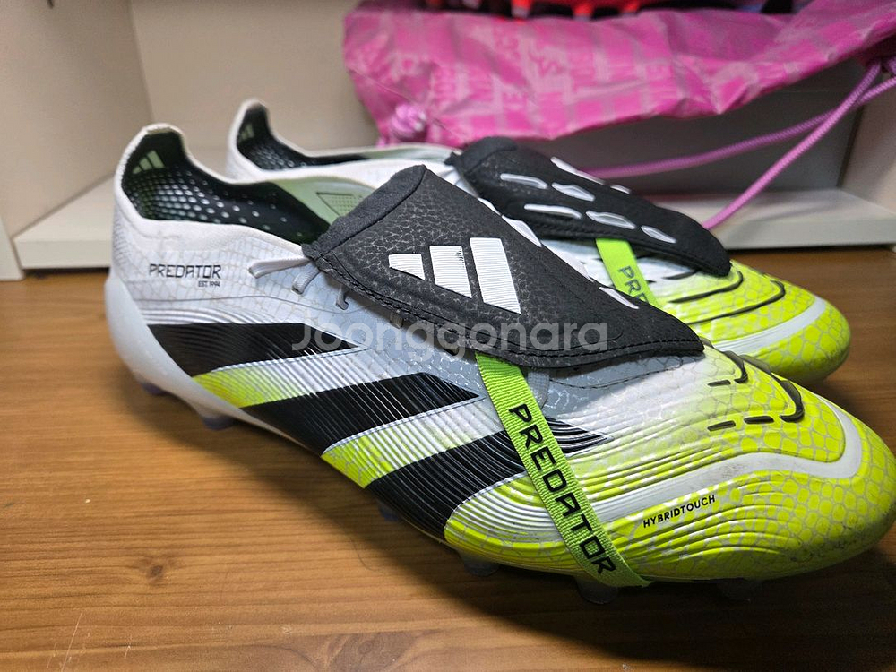 아디다스 프레데터 엘리트 25 ft ag 280사이즈 제가 275가 정사이즌데 275사이즈도 잘 맞습니다. 전용쌕은 찢어져서 버렸고 마지막 사진에 바르셀로나 가방있습니다 교신은 프레데터26,모렐리아 네오4 베타만 받습니다