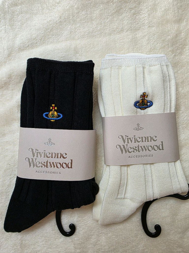 비비안웨스트우드 양말 새상품(개당가격) 굵은 골지가 중간 에 들어간 디자인 발목 위 올라오는 길이감 컬러 는 블랙 과 화이트