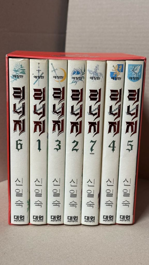 신일숙 작가님의 리니지 애장판 1-7 전권 입니다 소장용으로 가지고있던 책입미다 애장판 박스랑 함께 보관중이구요 박스에 옆면에 구김, 상단이랑 하단에 찢어진 부분이있으니 사진 참고해주세요. (보낼때 더 찢어지는걸 막기위해 마스킹테이프 붙이고 에어캡 여러번 둘러서 보낼예정입니다ㅡ마스킹테이프는 받으시구 떼시면됩니다) 책은 위아래옆면 깨끗하고 표지에 찢어지거나 하자 없습니다 세권정도 뒷표지에 작은 구김이 살짝있는데 이건 맨처음 책을 사서 받을때부터 있던거라 공정상 생긴 흔적인듯합니다. 그외엔 상태 좋고 세월이 흘러 생기는 흔적은 있을수 있습니다 라이언의왕녀 1-2(대여점용 상태 하) 덤으로 같이 드립니다. ✔️별다른 문의사항 없으시면 바로 결제해주시면 됩니다 🔻배송은 명절 연휴라 명절이 지난뒤 접수/배송 될 예정이니 참고해주세요 🔻포장은 최대한 꼼꼼하게 해서 보내드리고있습니다 🔻중고제품 특성상 반품 교환 환불은 안되니 신중히 구매해주세요