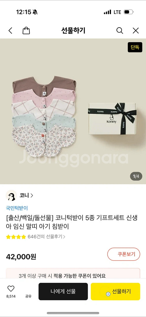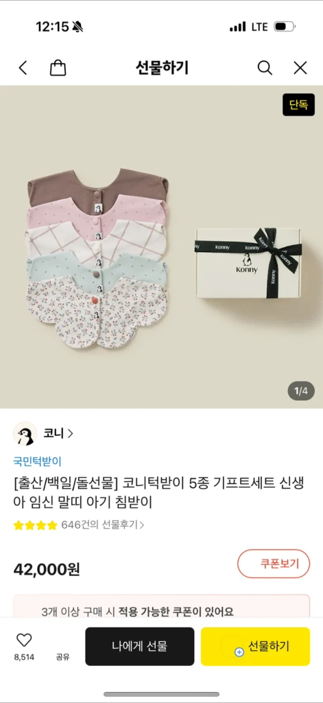 신생아 코니 턱받이 선물세트 5종 (새제품)