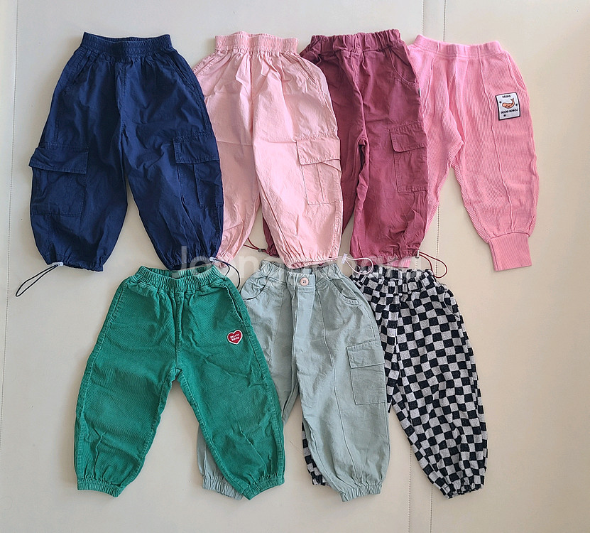 - 봄에 아이들 편하게 입힐 수 있는, 손 자주 가는 조거바지들이예요. 편하면서도 적당히 꾸안꾸로 좋아요! - 1,2,6번은 초여름까지도 괜찮을 것 같아요 - 기재사이즈 조금씩 다르지만 대략 M사이즈로 모두 총장 51전후예요. 대략 키 90후반까지 가능할 듯 합니다. 가지고 계신 바지와 길이 비교해보시길 추천드려요. - 7벌 일괄시 35000원에 드려요. 1. 남색 베일리 : 6천, 오염x, 약간의 세탁감 2. 분홍 베일리 : 7천, 오염x, 1회 착용 3. 와인색 해외수입 : 3천, 우측 엉덩이 이염(사진참고), 재질상 주름 있는 부분 빛바랜 듯한 느낌 있어요. 제 기준 입히면 크게 신경쓰이진 않으나 저렴히 내놓아요. 4. 분홍 보보제이 : 5천, 오염x, 깨끗함 5. 초록 벨리타앤보이즈: 7천, 오염x, 깨끗함 6. 연두 밀리밤: 6천, 오염x, 약간의 세탁감 7. 체크 비이글: 6천, 오염x, 약간의 세탁감