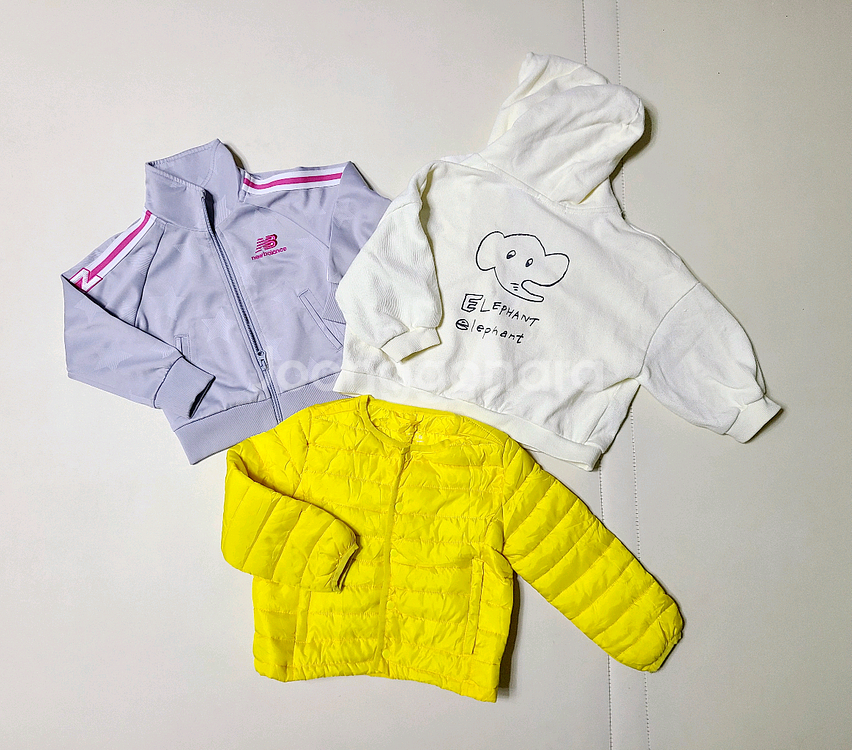 - 봄에 입히기 좋은 두께의 화사한 옷들이고, 아무데나 잘 어울리는 휘뚜루마뚜루 옷들이예요. - m,100사이즈이지만 작게 나온 듯 해서 키 90중반까지 추천해요. 기장이 짧은 옷들이라 평소 90사이즈 입는 아이들도 괜찮을 것 같아요. 마른 편 저희 아이 키 90후반까지 입긴 했습니다.