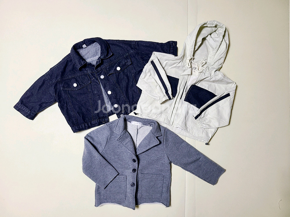 - 입히면 너무 예쁜 유아 자켓들이예요 - s, 90, 100사이즈로 마른 편 저희 아이 키 90후반까지도 맞았어요. 90중반까지 추천해요. - 세번째 자켓은 미착용 옷입니다.