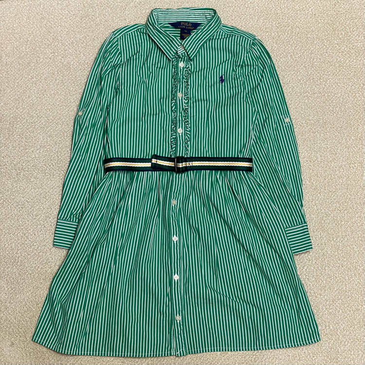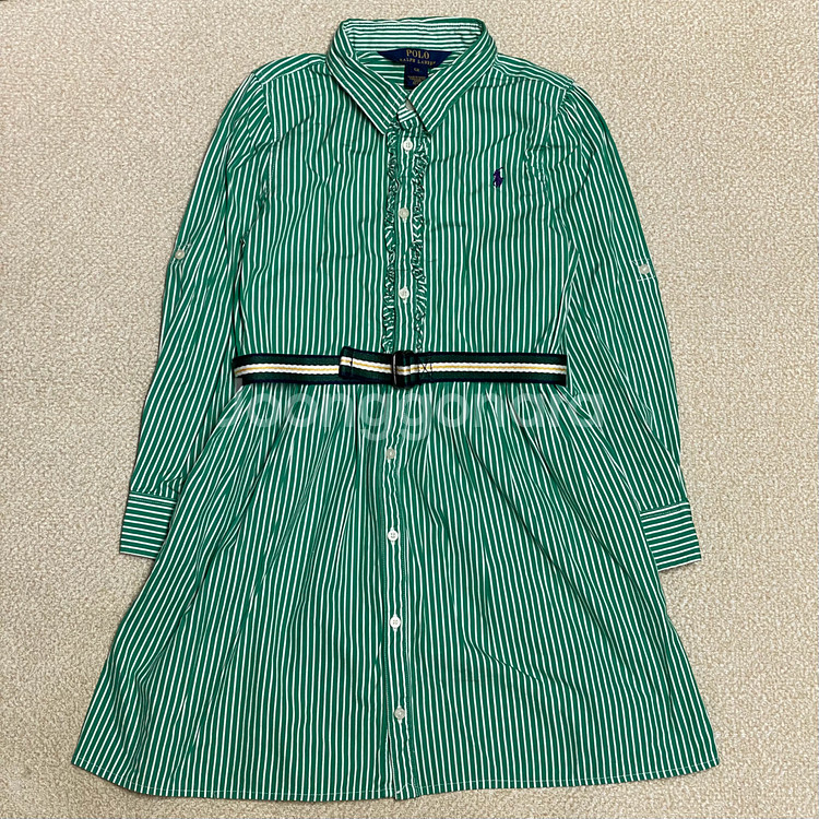 (정품) 폴로 신형 키즈 그린 스트라이프 셔츠 벨트 원피스 6세