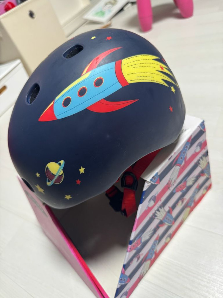마이크로 아동용 헬멧입니다 뒤쪽 안전불빛도 잘 나옵니다. 실사용 많지 않아, 안쪽 보풀없고 깨끗합니다. 로켓 디자인이 귀여워요 사이즈는 52-56cm입니다 - Fidlock 자석 버클로 아이들이 쉽게 착용할 수 있습니다 - 가볍고 튼튼한 구조로 안전하게 보호해 줍니다 - 통기성이 좋아 쾌적하게 착용할 수 있습니다