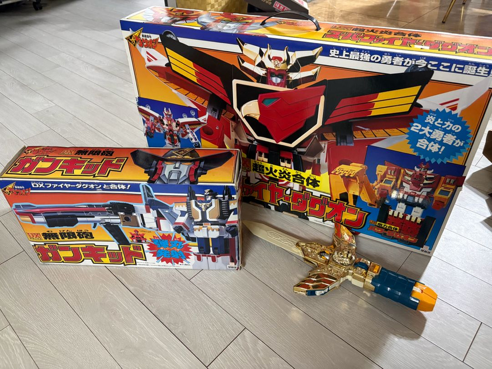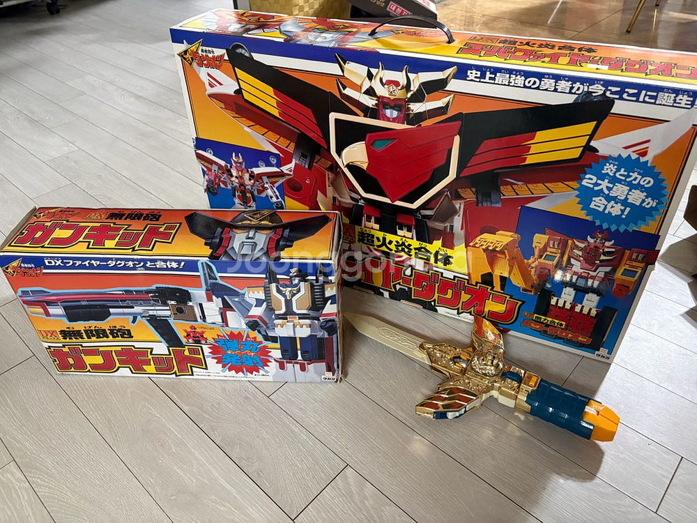 DX 슈퍼화이어다그온 합본 팝니다. 모든 구성품 다 있고 라이언 led 건키드 기믹 작동 잘 됩니다. 택배비 만원 있습니다.