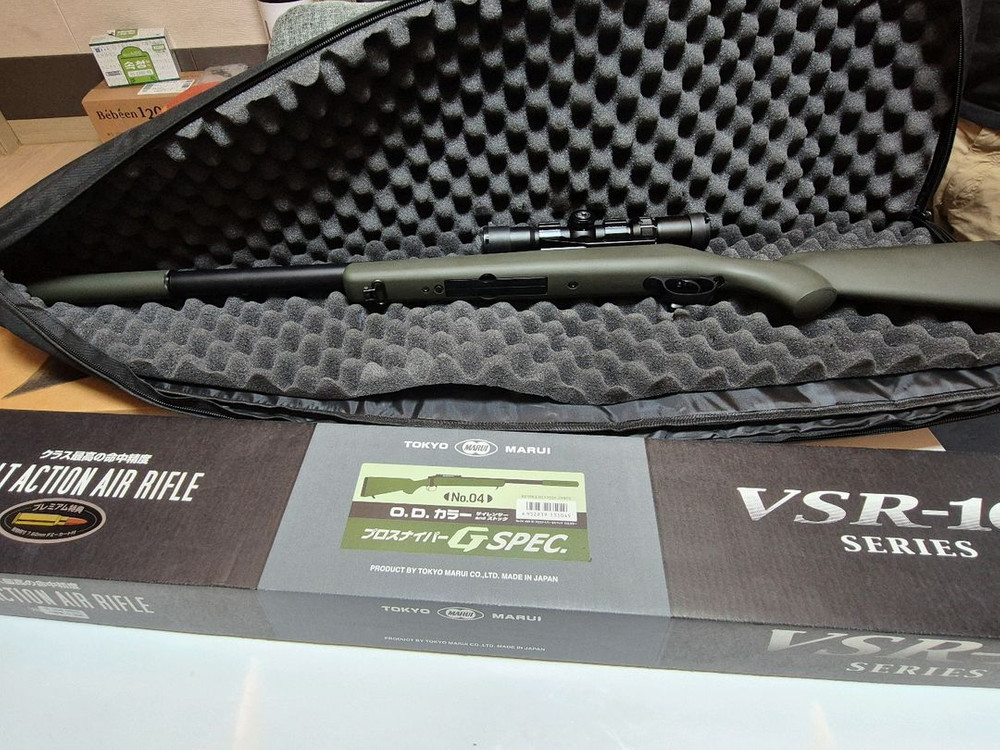 개인정보(거래정보)를 주고받는 행위는 사기에 노출될 수 있으므로 즉시 중고나라로 신고해 주세요도쿄마루이 VSR-10 G-SPEC (OD 컬러) 볼트액션 스나이퍼 스코프 포함 하드케이스 포함 박스 있음 상태 매우 양호 고민하지마시구 연락주세용~ 쿨거래 하시면 네고해드려여