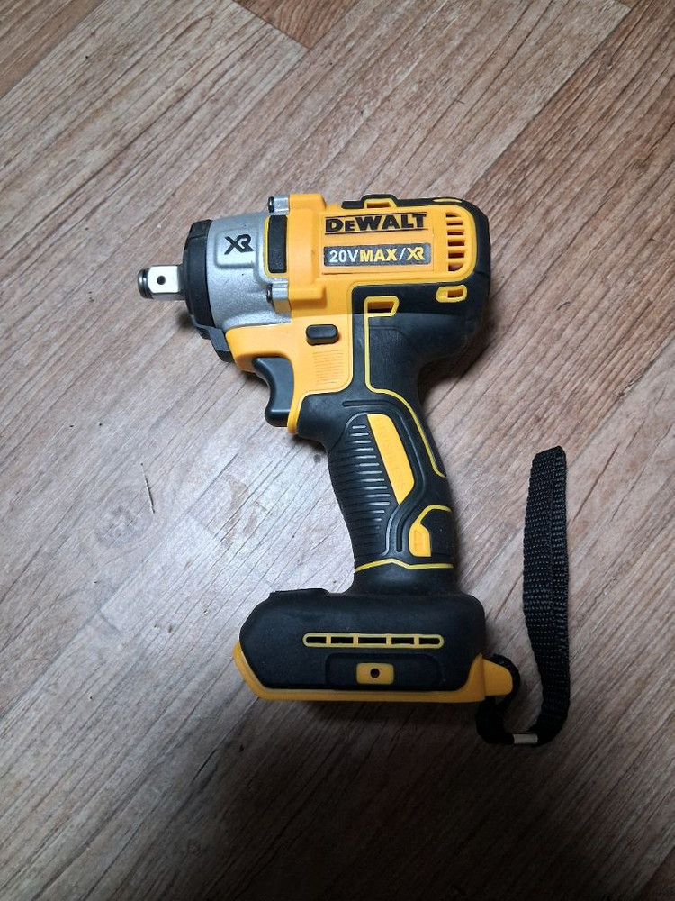 20V MAX XR 충전식 임팩트렌치입니다. 배터리와 충전기는 포함되지 않고 본체만 판매해요. 사용감은 있지만 작동 상태 양호합니다.