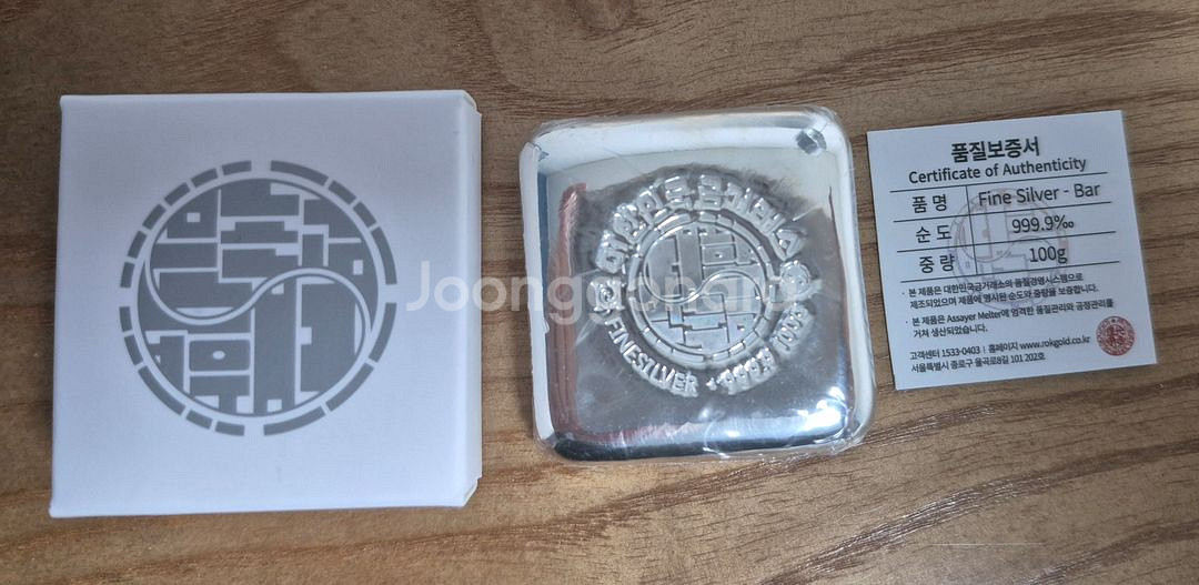 대한민국금거래소에서 제조된 순은 실버바 100g입니다 - 99.99%의 순도를 자랑합니다 품질보증서와 케이스 함께 드립니다 배송받은지 하루된 새상품 직거래 신사역 택배거래 +3500 쿨거시 만원 네고 해드립니다