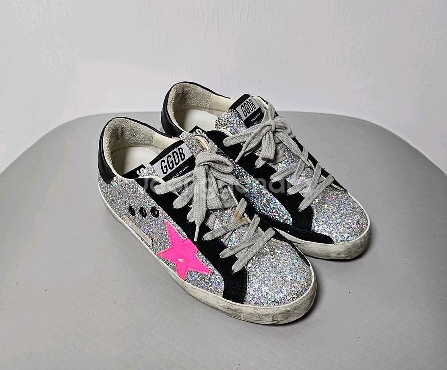 골든구스 슈퍼스타 스니커즈 36사이즈(230)입니다 - 글리터 디자인에 핑크색 별이 포인트입니다 사용감 많지 않고 상태 좋습니다 캐주얼 및 원피스 등 어디든 예쁘게 매칭하실 수 있습니다