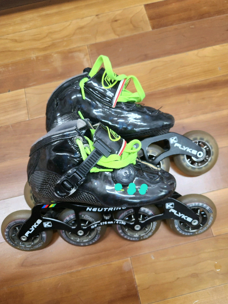 브랜드 FX4 레이싱 인라인스케이트 판매해요. 블랙 컬러에 그린 포인트가 들어간 깔끔한 디자인이고, 거의 새제품과 같아요 구매후 얼마 안탔어요. 실착용은 주말에 간헐적으로 15회미만입니다. 바퀴는 거의 새거입니다. 사용감은 있지만 상태 매우 양호합니다. 발크기 200~215 (열성형 가능해서 늘릴수 있어요) 부츠450,000+프레임200,000+베어링,스페이서25,000+바퀴84미리30,000=705,000원에 구매했고 실착용은 15회미만입니다. 이름이 적혀있어 30만윈에 팝니다.